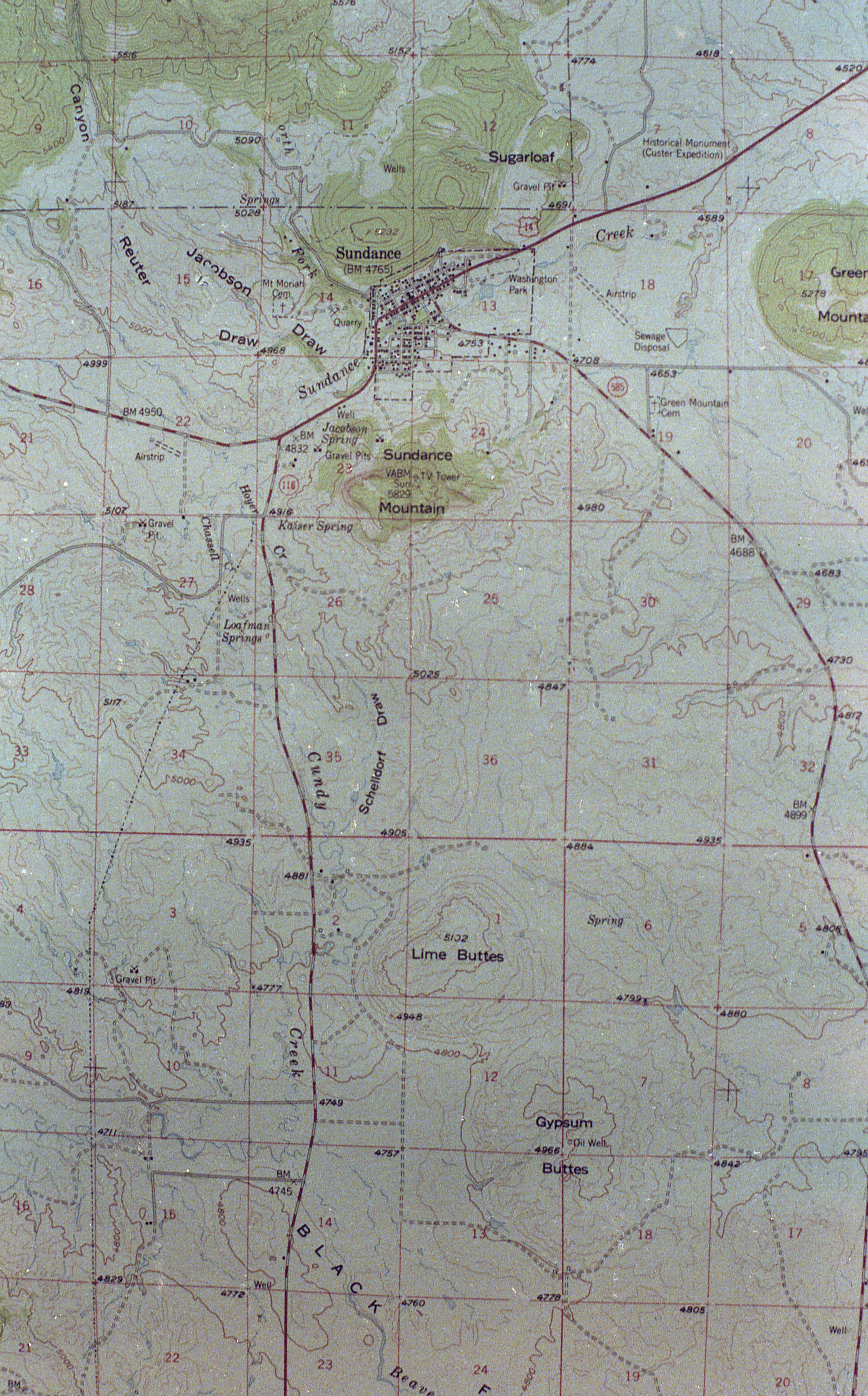Topographic Map of Sundance, Wyoming (30 miles from Devil’s Tower)