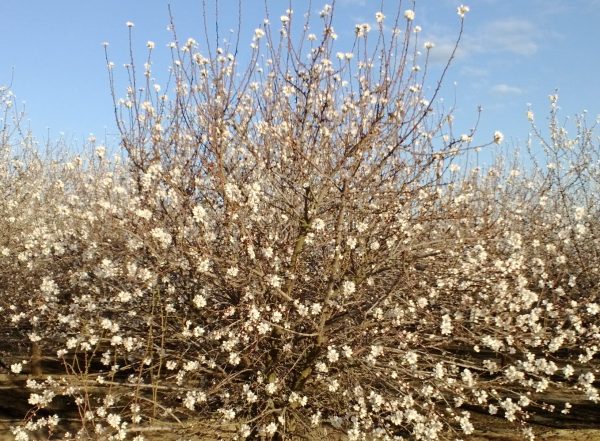 (the photo is from yesterday and shows an almond tree in blossom across the road from our house– spring is already here in the San Joaquin Valley)